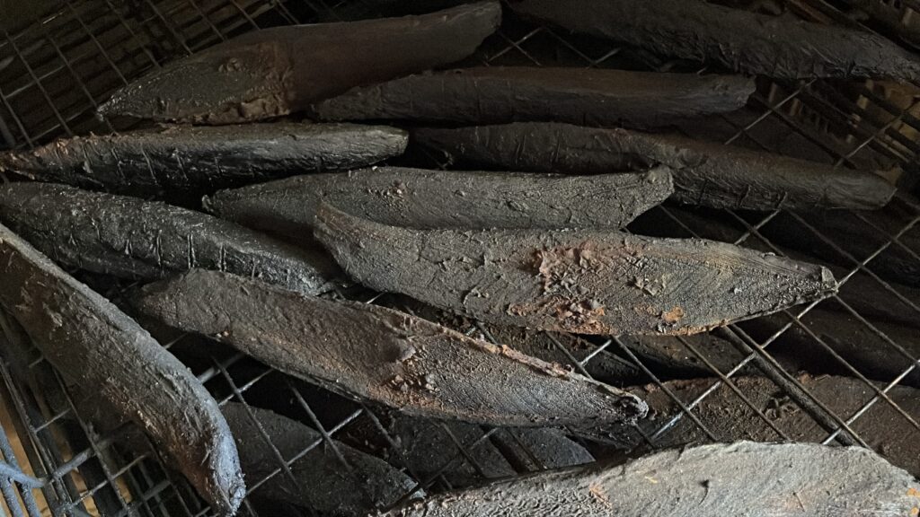 この後カビつけと天日干しを繰り返し、カビが脂分を旨味に変えていき本枯れ節の完成です。