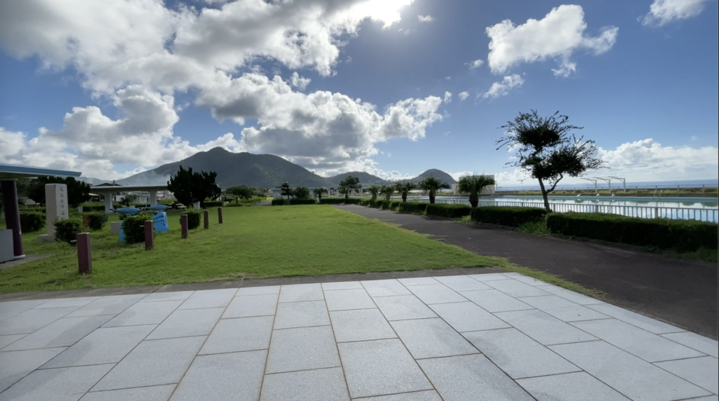 台風の直撃を受けることの多い海辺はゲートボールなどできる広場になっており、住宅地と高波の緩衝地帯となっていました。