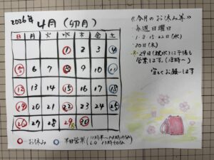 〜4月のお休み〜